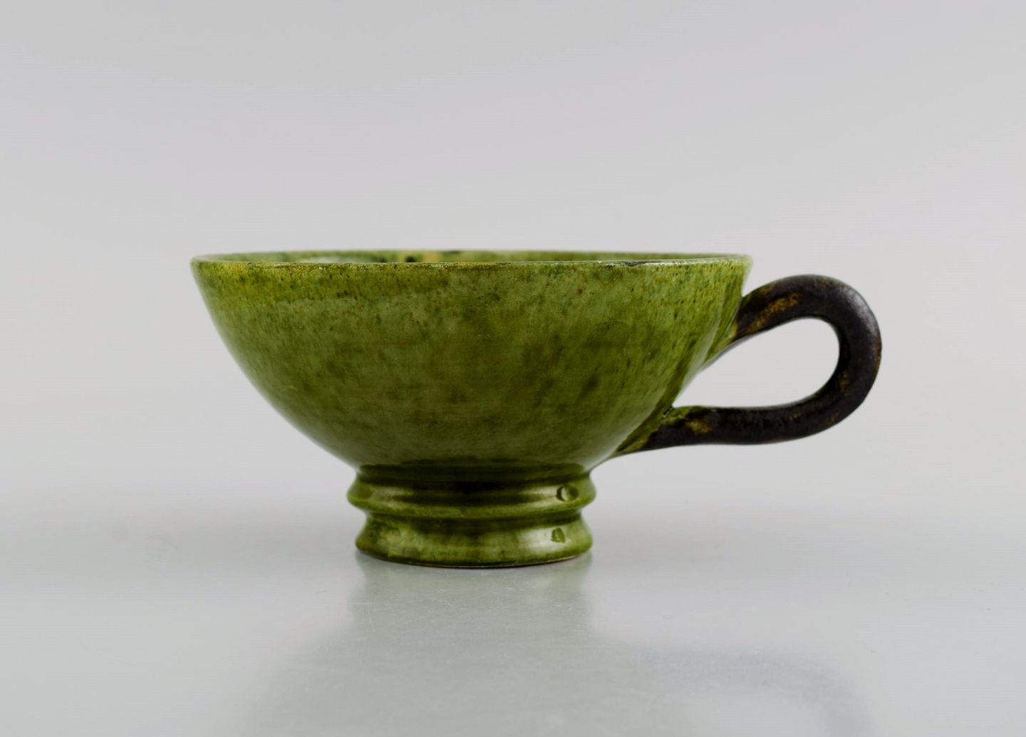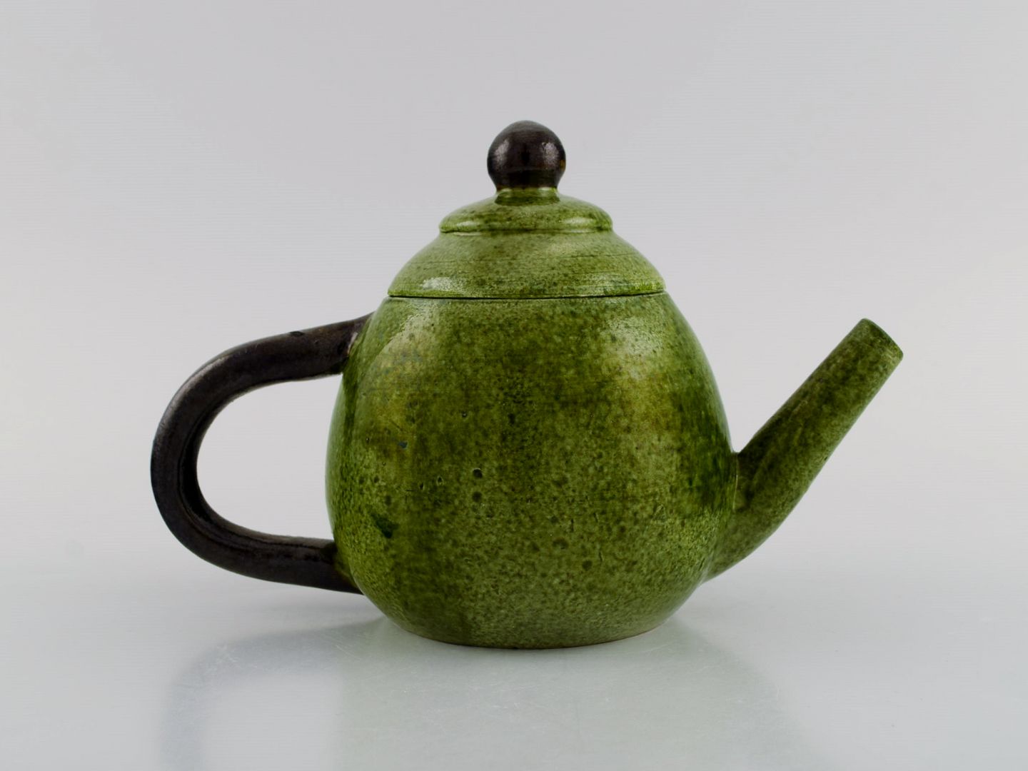 Suzanne Ramie (1905-1974) for Atelier Madoura. Egoist tesæt i glaseret stentøj. Smuk glasur i grønne nuacer. Midt 1900-tallet.