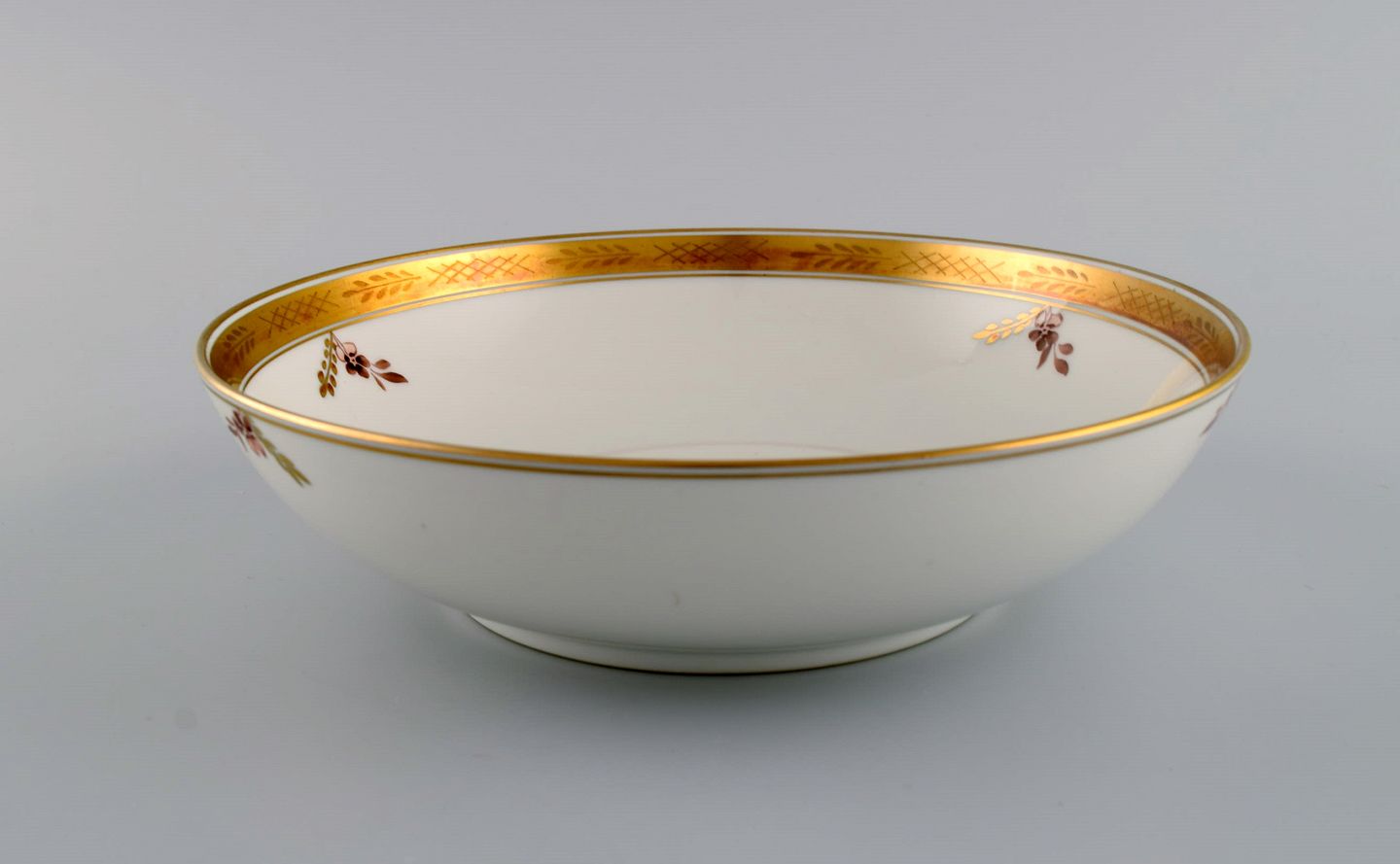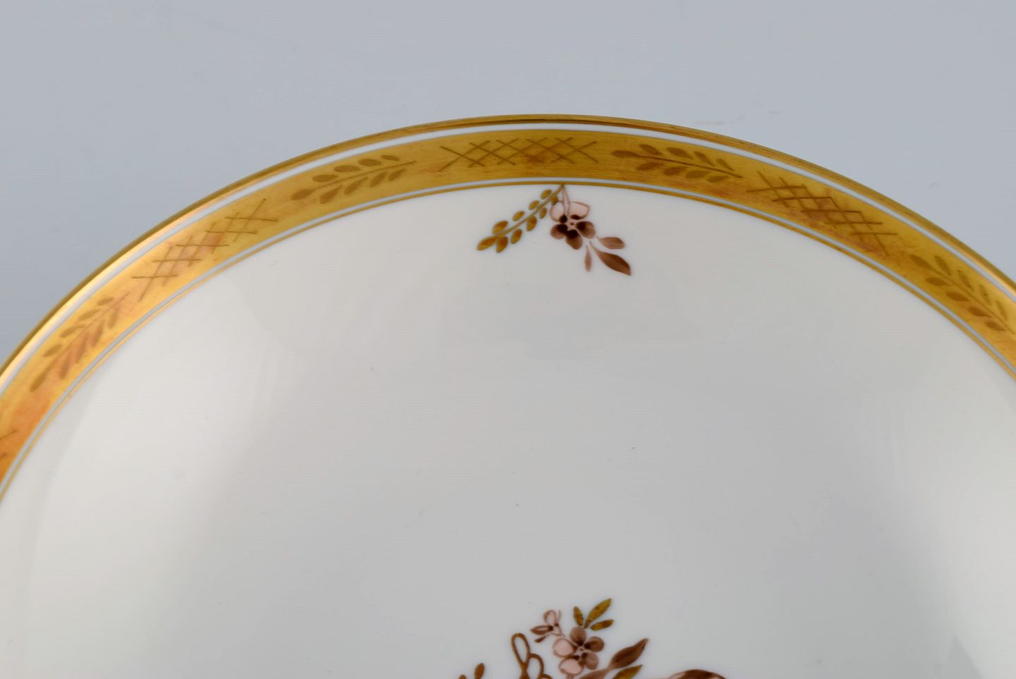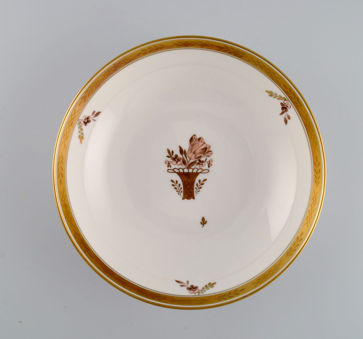 To Royal Copenhagen Guldkurv skåle i håndmalet porcelæn med blomster og gulddekoration. 1960'erne. Modelnummer 595/9024. Måler: 21,5 x 5,5 cm. I flot stand. Stemplet. 1. Sortering.