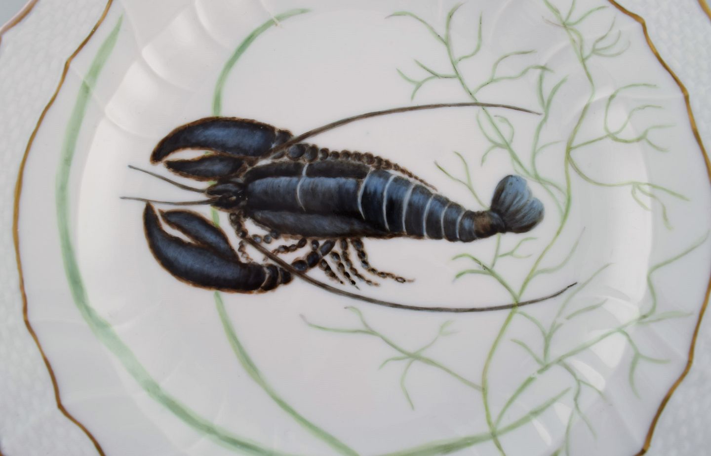 Royal Copenhagen middagstallerken i porcelæn med håndmalet fiskemotiv og guldkant. Flora / Fauna Danica stil. Dateret 1957. Diameter: 25,5 cm. I flot stand. Stemplet. 3. Sortering. Hjemmedekoreret.