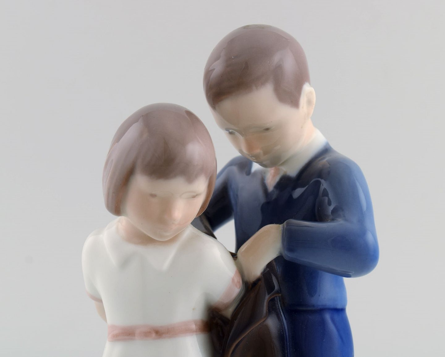 Bing & Grøndahl porcelænsfigur. Søskendepar. 1970'erne. Modelnummer 2312. Måler: 18 x 9 cm. I flot stand. Stemplet. 1. Sortering.