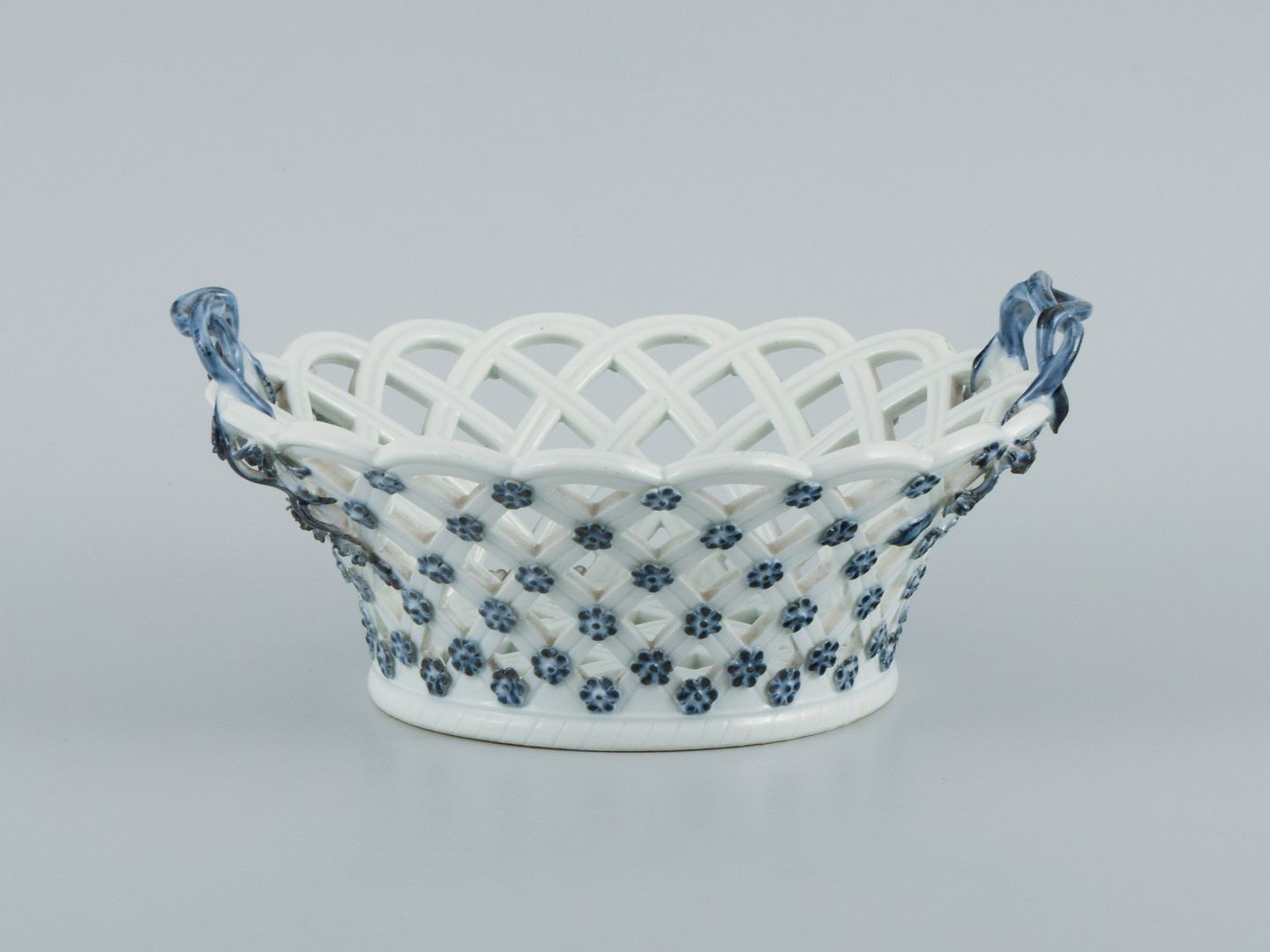Meissen, Tyskland. Sjælden og tidligt Meissen skål med gennembrudt kant, hanke i form af grene og bladværk. Pousserende blomster i relief. Ca. 1800. I flot stand. Stemplet Mål: D 22,0 x H 7,5 cm.