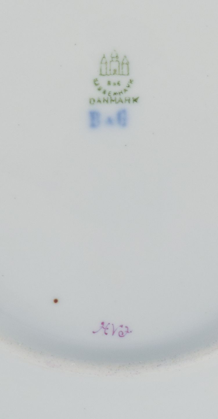 Fire middagstallerkner dekoreret med blomster og guldkant.