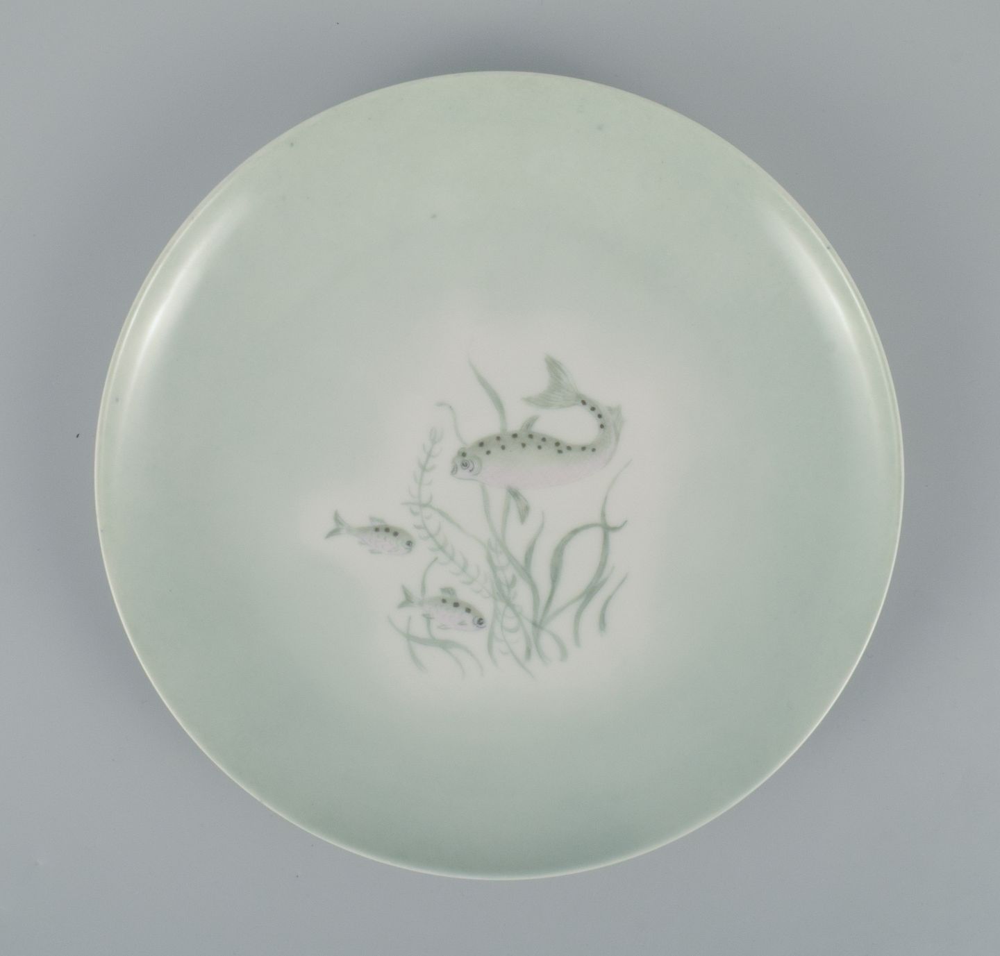 Th. Karlinder for Bing & Grondahl. Six hand-painted dinner plates with fish motifs. 1956. In excellent condition. First factory quality. Marked. Dimensions: D 23.5 cm.