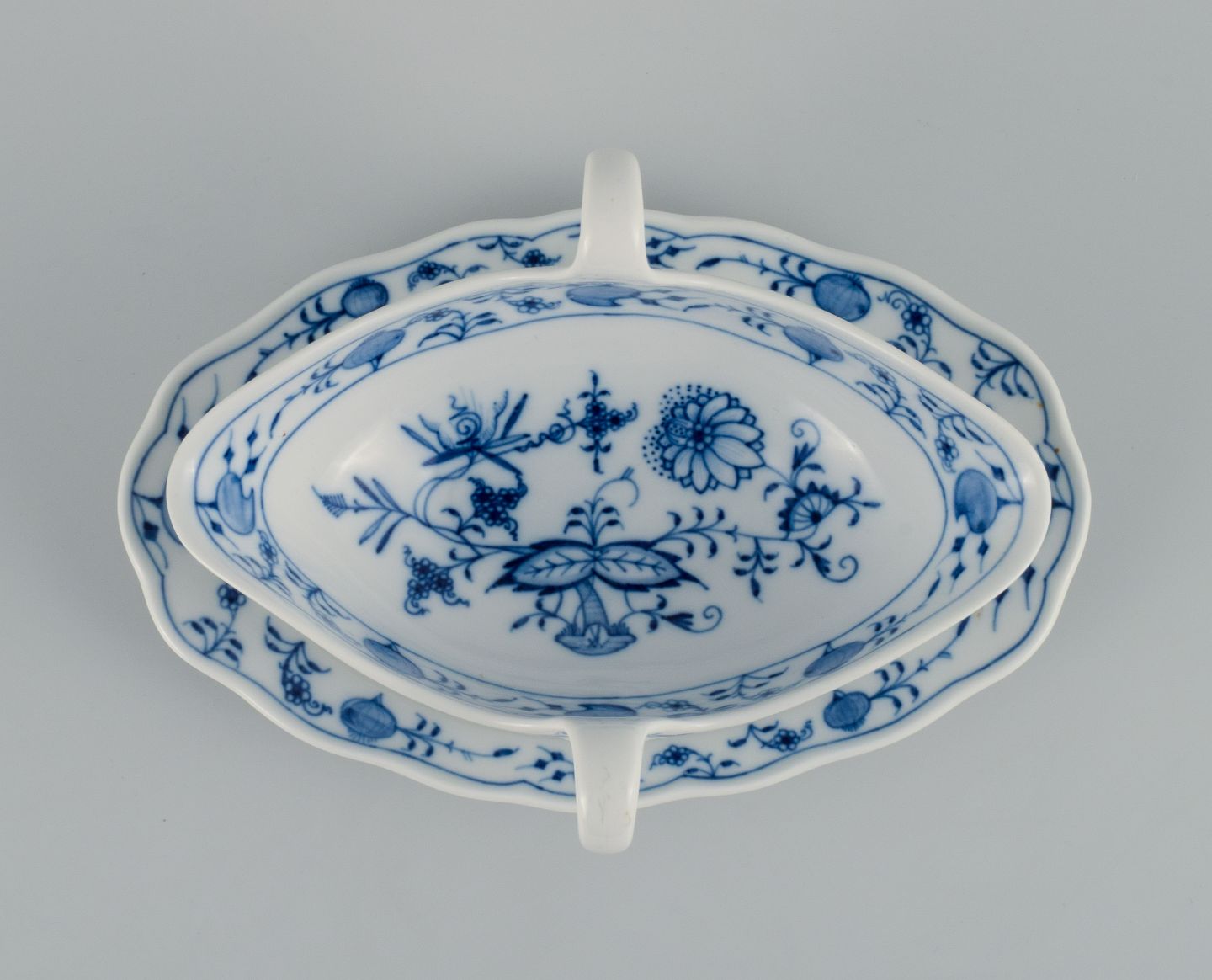 Meissen, løgmønstret saucekande. Ca.1900. Første sortering. I perfekt stand. Stemplet. Mål: L 22,0 x D 13,5 x H 8,0 cm.