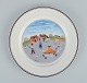 A set of five "Naif" porcelain plates with motifs of families, villages and biblical scenes in a naïve style.