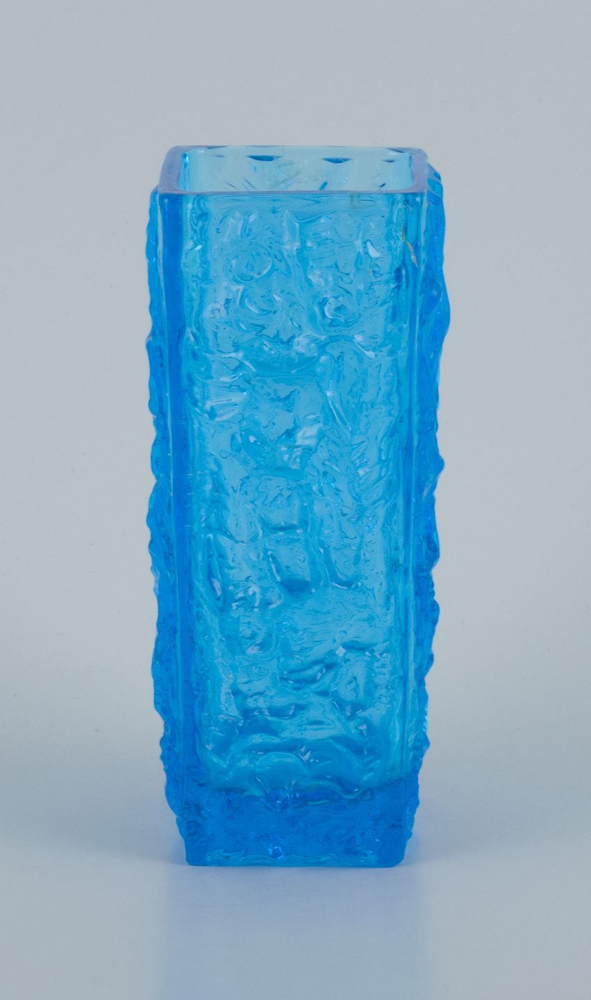 Gullaskruf, Sverige, firkantet kunstglasvase og lysestage i blåt glas.