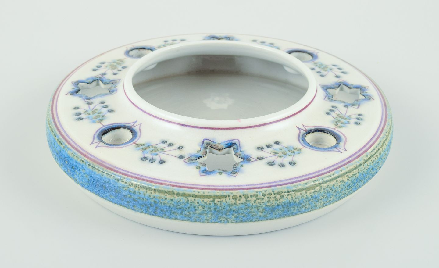 Berte Jessen for Aluminia. Adventsstage i fajance. Håndmalet. Model 556/3359. Ca. 1970. Stemplet. I flot stand med naturlige krakeleringer. Mål: D 16,0 cm. x H 3,2 cm.