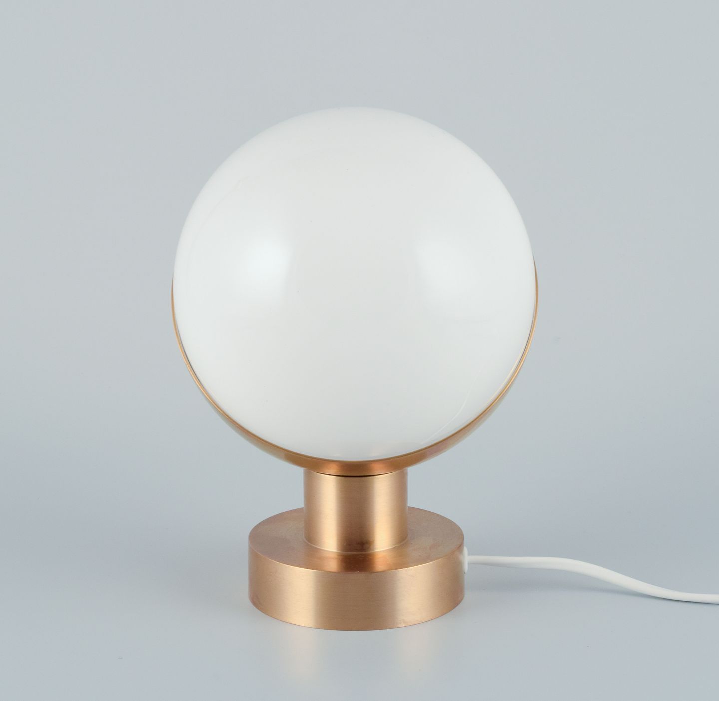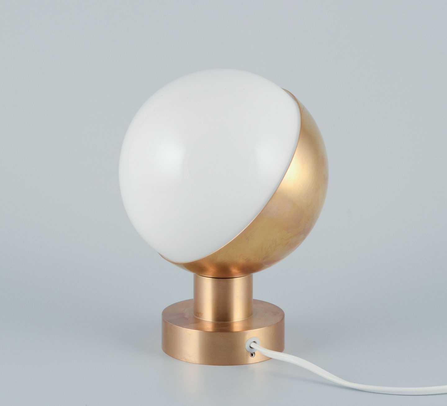 Vilhelm Lauritzen (1894-1984). Væglampe/bordlampe af messing og opalglas. Stor model. 2000-tallet. Perfekt stand. Fremstår ny og ubrugt. Mål: D 14,0 cm. x H 20,0 cm.