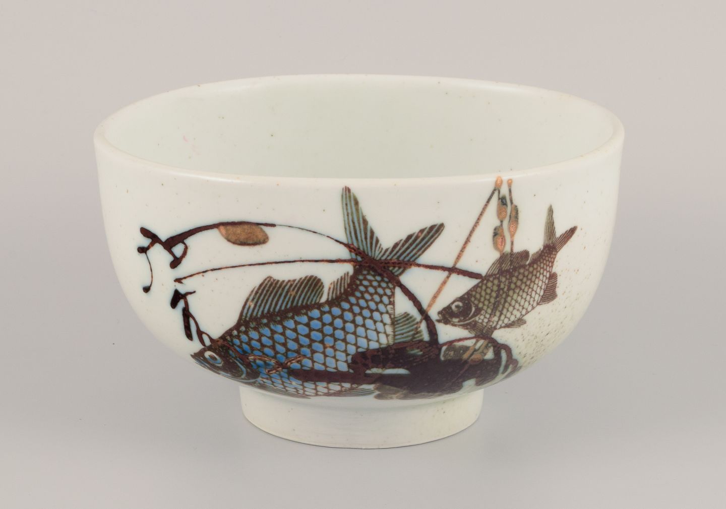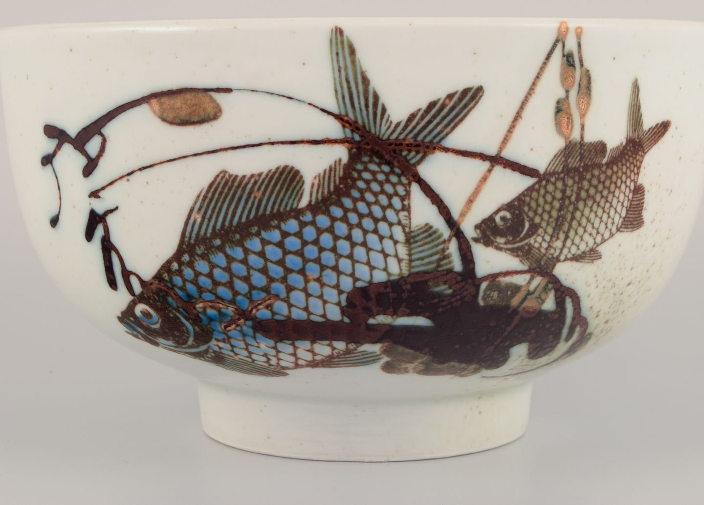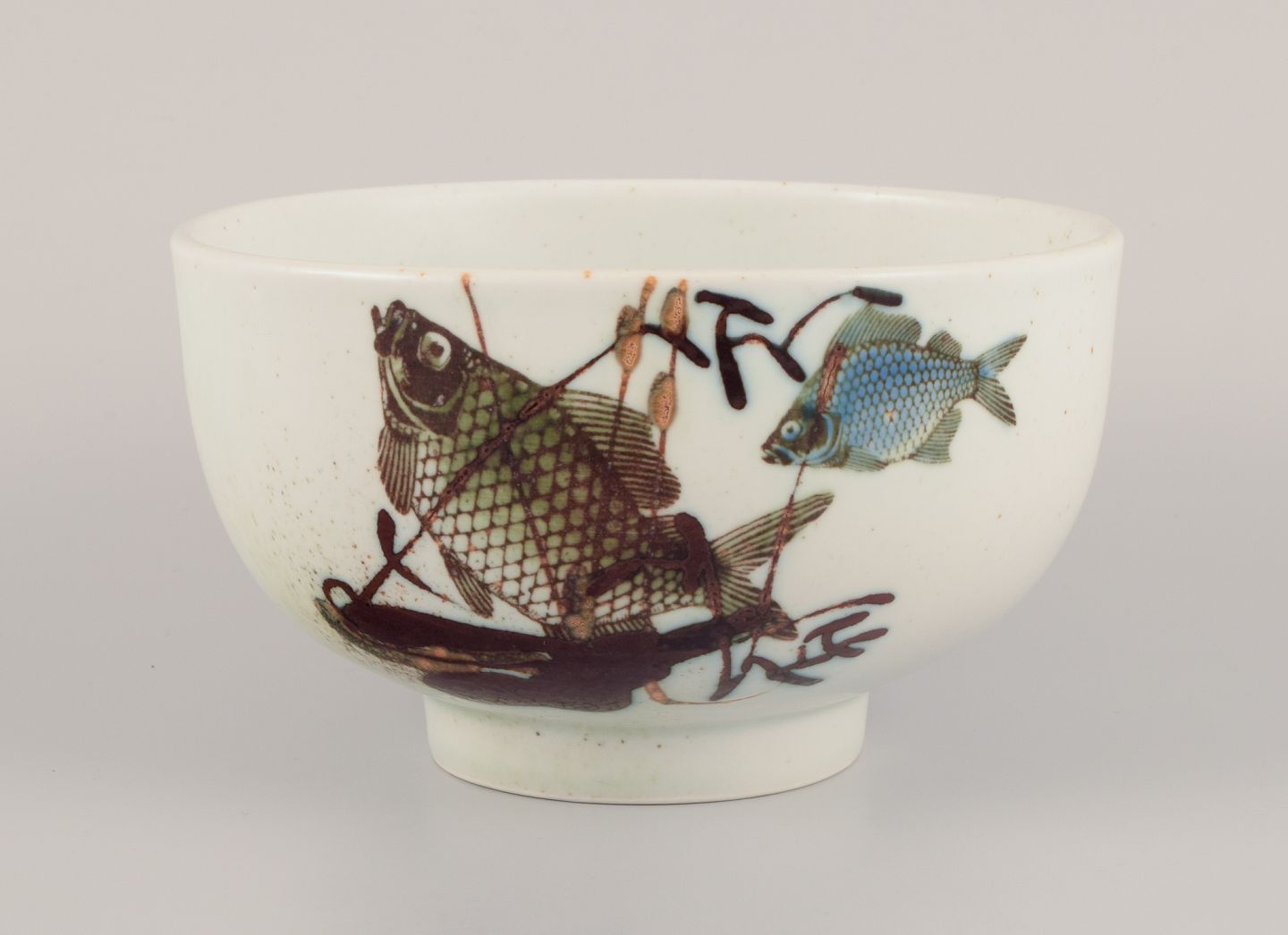 Nils Thorsson for Royal Copenhagen. Fajanceskål med fiskemotiver. Datering: 1975-1979. Stemplet. Perfekt stand. Første sortering. Mål: D 17,0 cm. x H 10,0 cm.