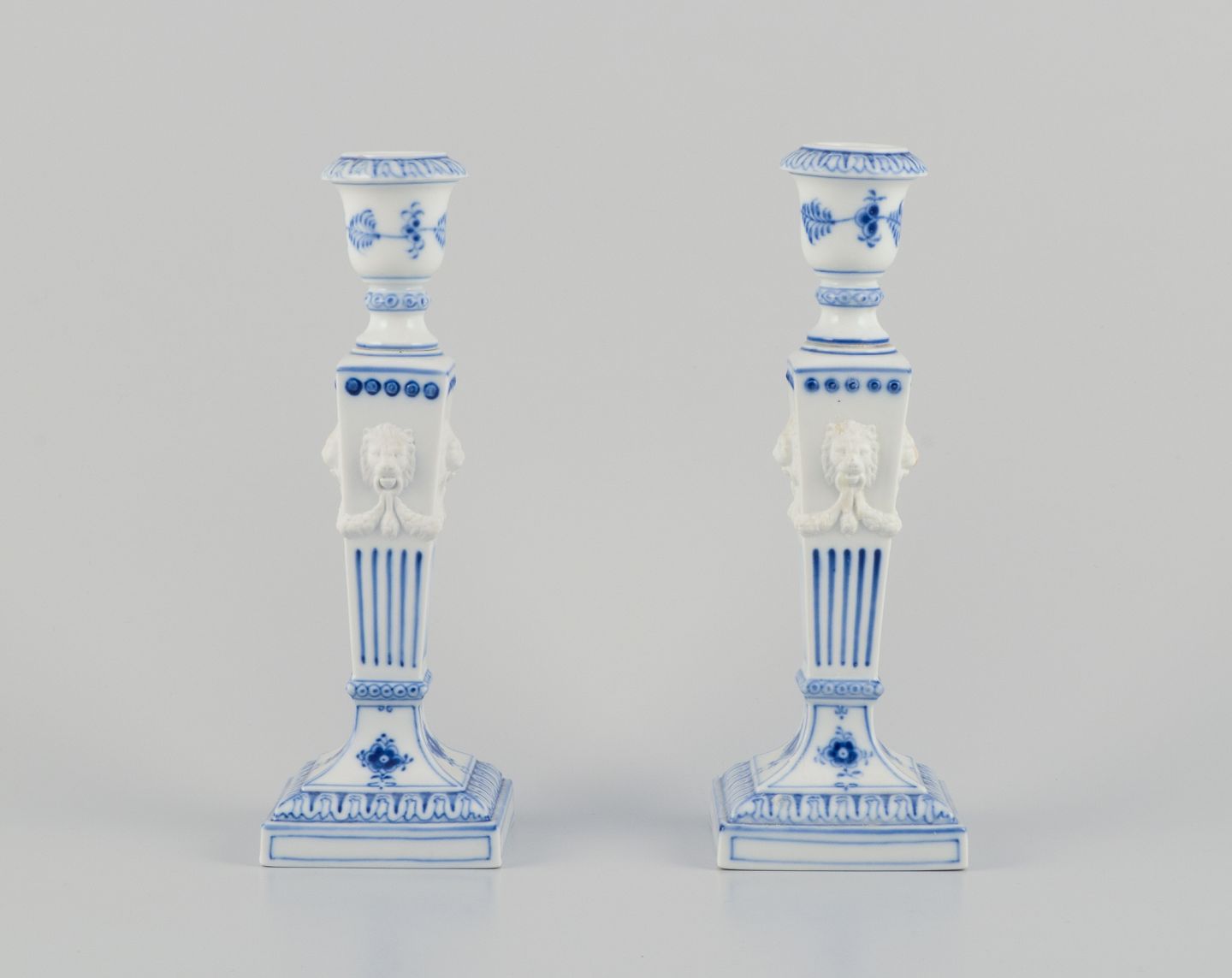 Royal Copenhagen, a pair of Blue Fluted candlesticks. Dating: 1963. Model 1/15. Marked. Perfect condition. First factory quality. Dimensions: H 23.0 cm x W 7.6 cm.