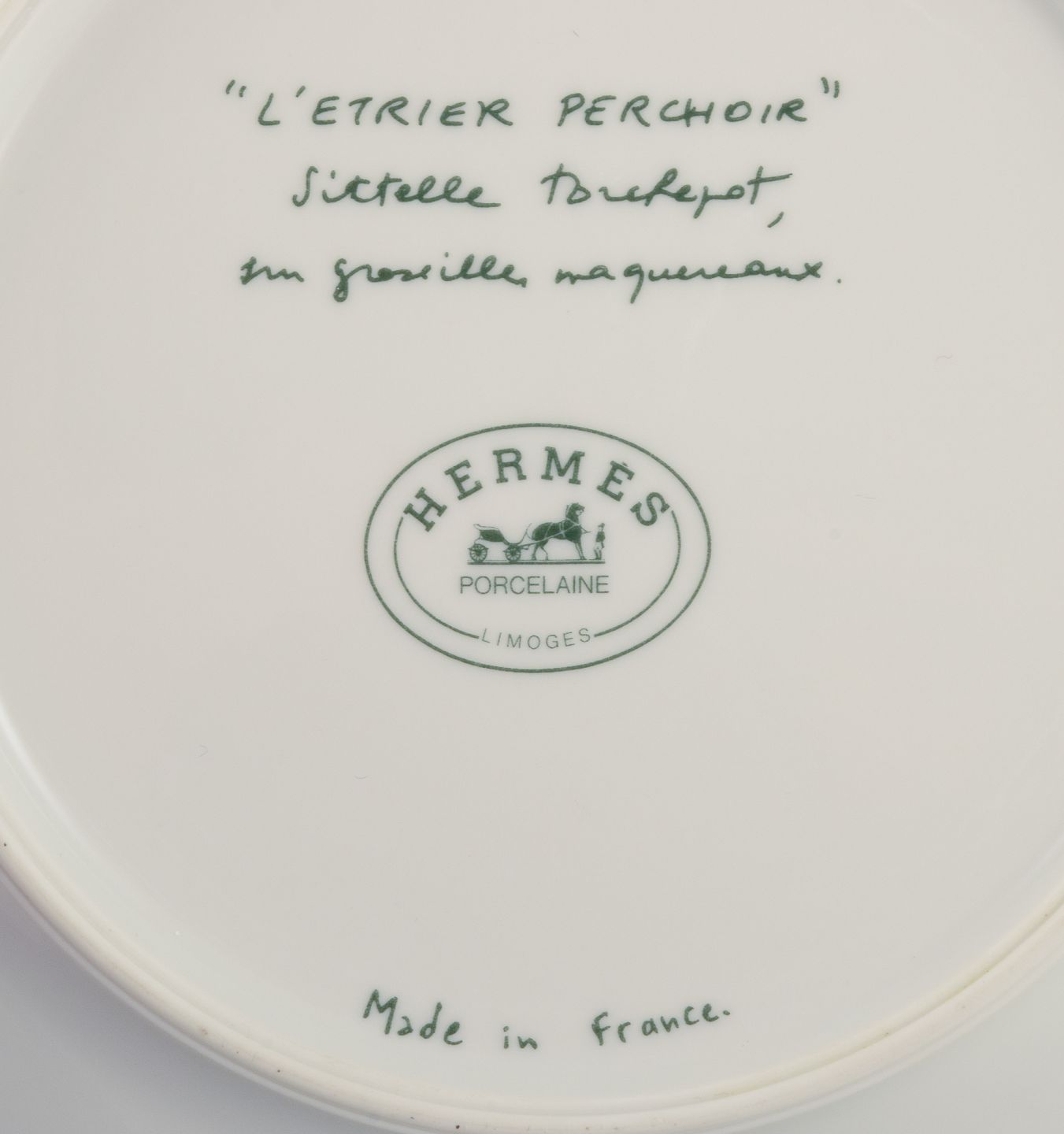 Hermès, France. Two porcelain plates with bird motifs from the "LÉtrier Perchoir" series. Late 20th century. Marked. Perfect condition. Dimensions: 21.0 cm. x 2.0 cm.