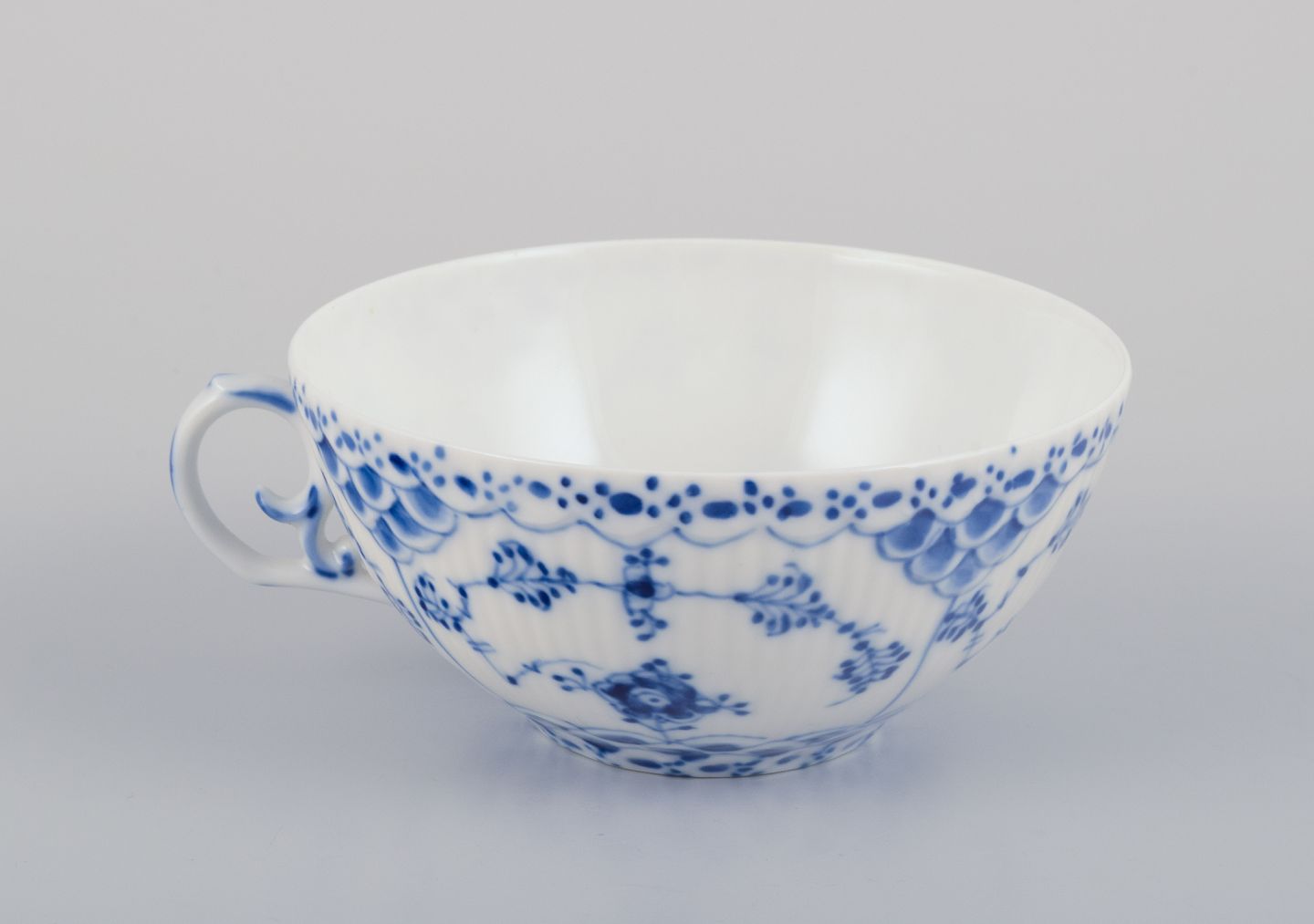 Royal Copenhagen Musselmalet Helblonde, fire par store tekopper. Modelnummer: 1/1130. Datering: 1959 Stemplet. I perfekt stand. Første sortering. Kop: D 10,0 cm. uden hank x H 4,7 cm. Underkop: D 15,0 cm.