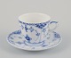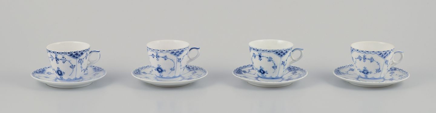 Royal Copenhagen Musselmalet Halvblonde, fire kaffekopper med underkopper.
