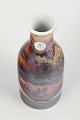 Slender baluster-shaped stoneware vase with a rich multicoloured glaze in brown, bluish and ochre tones, finished with a light rim at the mouth.