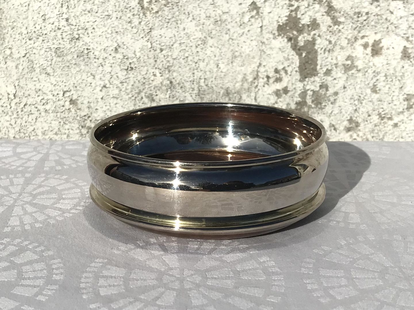 Bottle tray, silver-plated with wooden bottom, 12.5 cm in diameter, 4 cm high * Perfect condition *