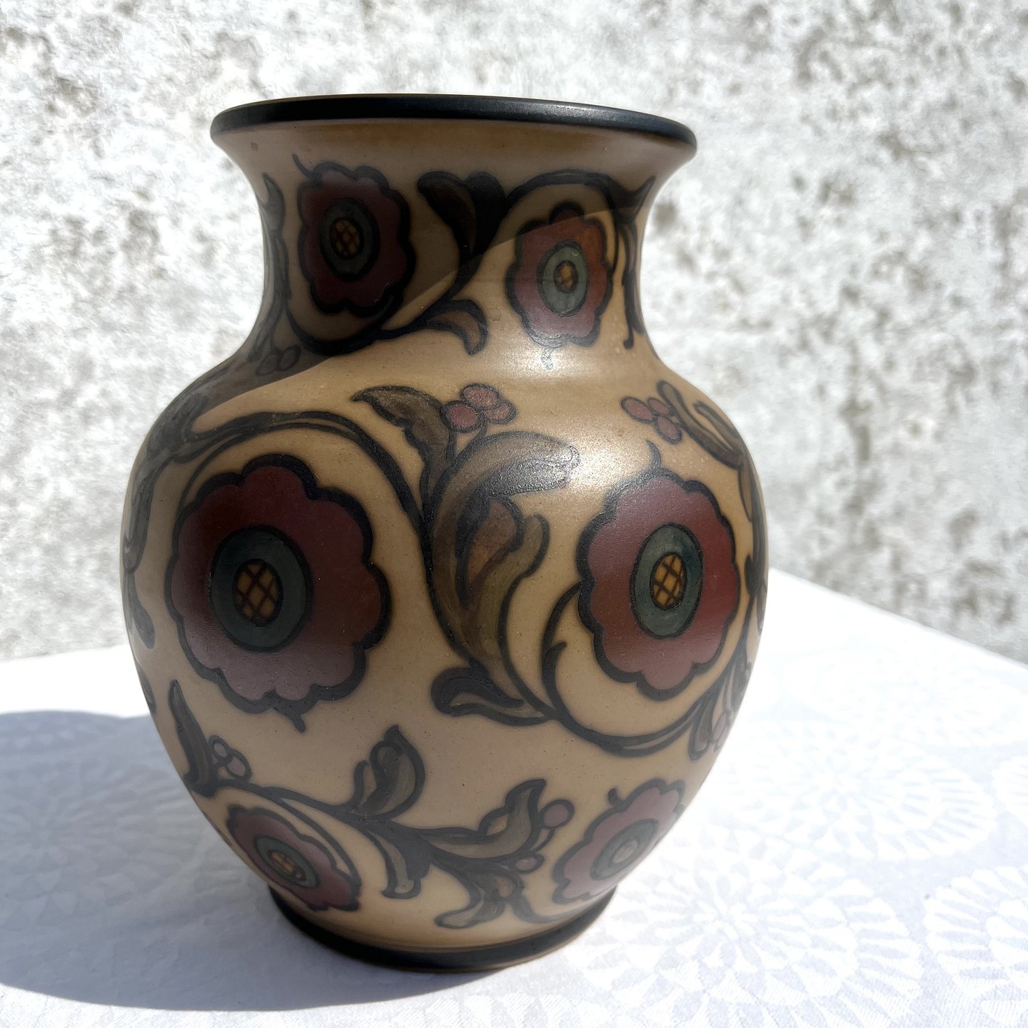 Bornholm ceramics, Hjorth, Vase with flowers, 18.5 cm high, 17 cm in diameter, Nr. 95 * Nice condition *