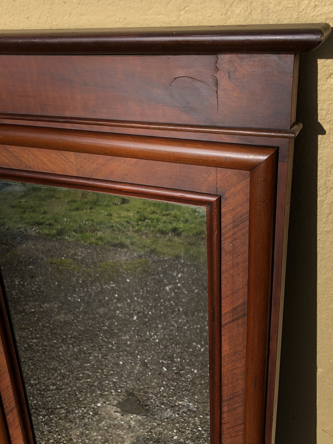 Mirror in a mahogany veneer frame, with patination on the mirror glass. Dimensions: 107x55cm