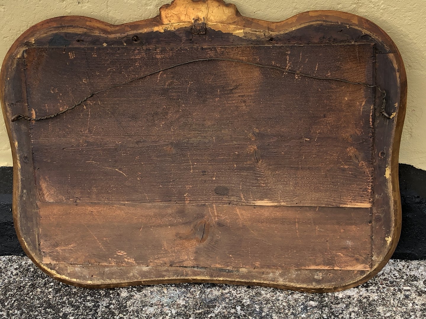 Older mirror in a gold-painted wooden frame, Some age-related obscurities in the mirror, otherwise nice patinated condition. Measure approx. 80x62 cm
