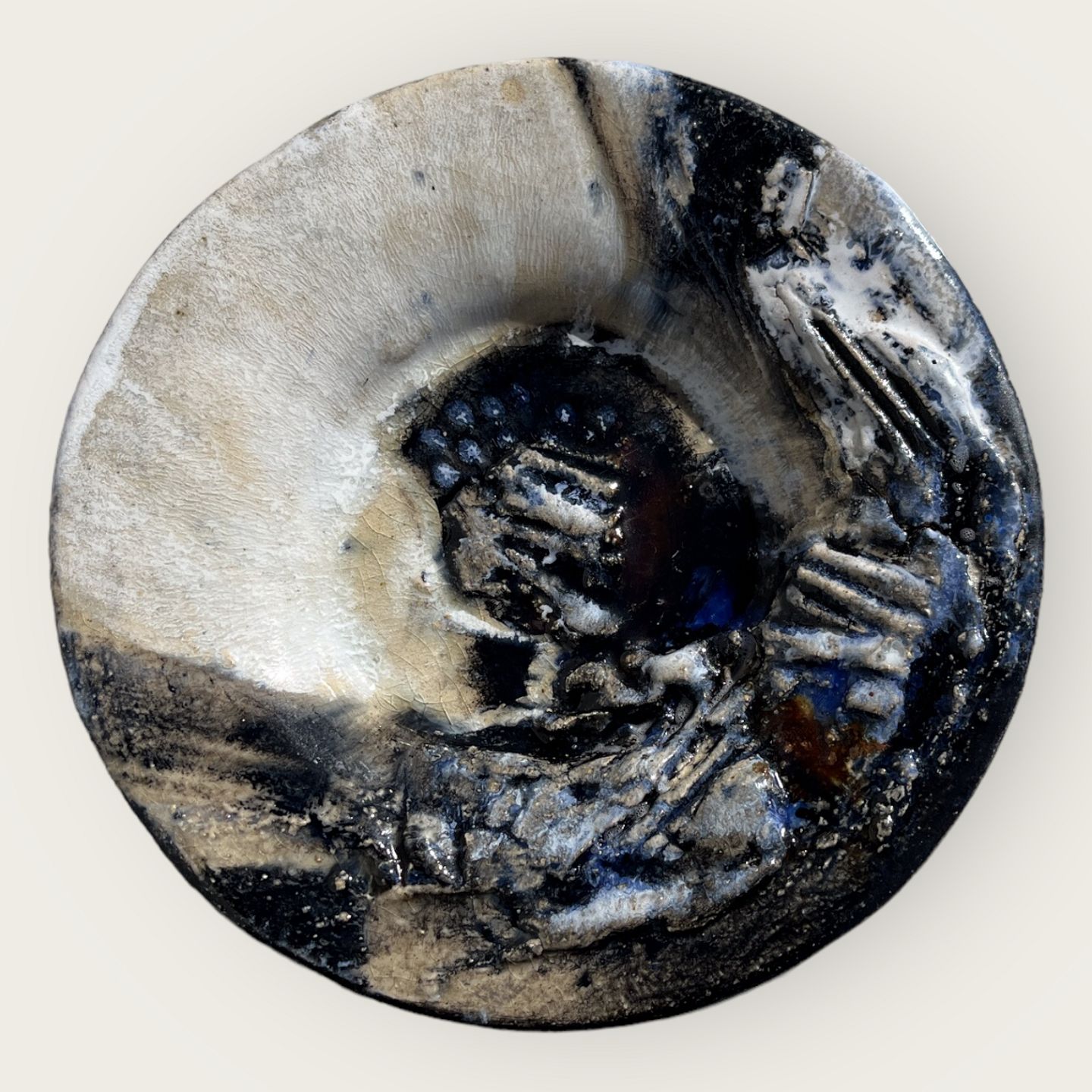 Jeppe Hagedorn Olsen, Abstract motif, Blue/ white/ black glaze, 19cm in diameter, From own workshop *Perfect condition*