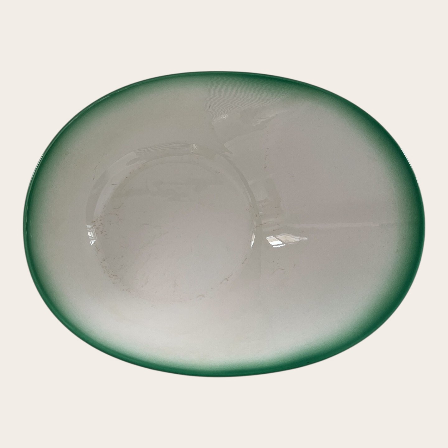 Royal Copenhagen, Aluminia, Ursula, Asymmetrical bowl, Green / white, 1st grade, 30.5cm long, 24cm wide, 8cm high, Design Ursula Munch Petersen *With traces of use*