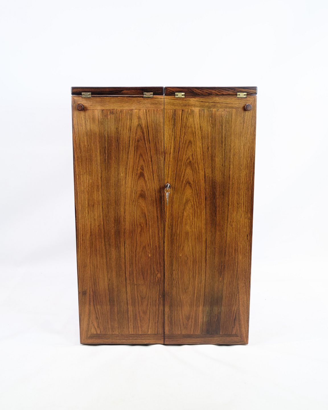 Please contact us for price informationA very rare and unique bar namely a "Captain's Bar". Craftsmanship of the highest quality executed and manufactured from Rosewood in collaboration with built-in Stelton ice cube trays. The bar has mounted wheels, which make it easy to move. Made by Dyrlund Møbler, which was founded in the 1960s and has had a great influence on Danish design furniture history.