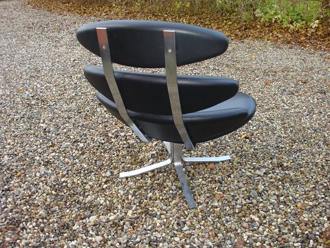 "Corona" easy chair, model Ej5 in black leather designed by Poul M. Volther.