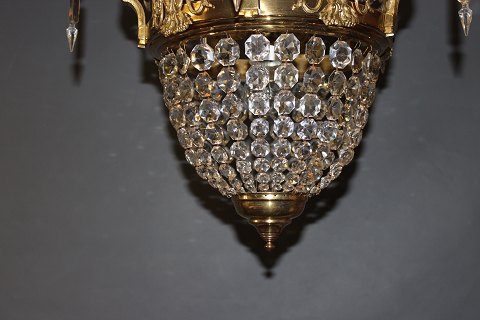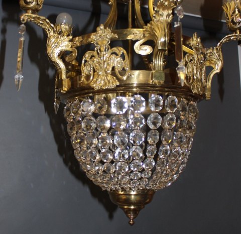 SoldCrystal Chandelier, Five-armed with patinated brass .from around 1910