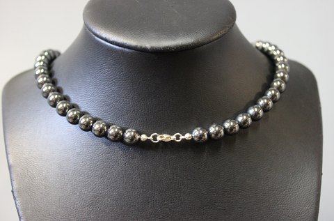 SoldHematite necklace with dark grey bloodstones. The Chain is 43 cm long. Stone - 6 mm.