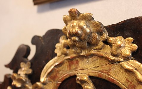 Mirror in Rococo style and walnut. The mirror is from around the 1740s, Denmark and is in it's original condition.