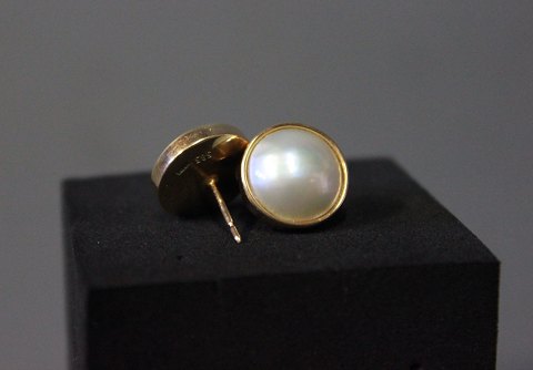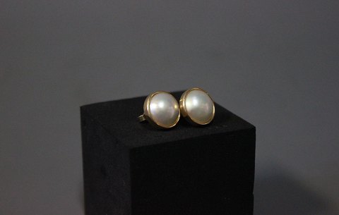 Beautiful large Pearl earrings in 14 ct. gold with cultured halfpearls. Design VRENI.