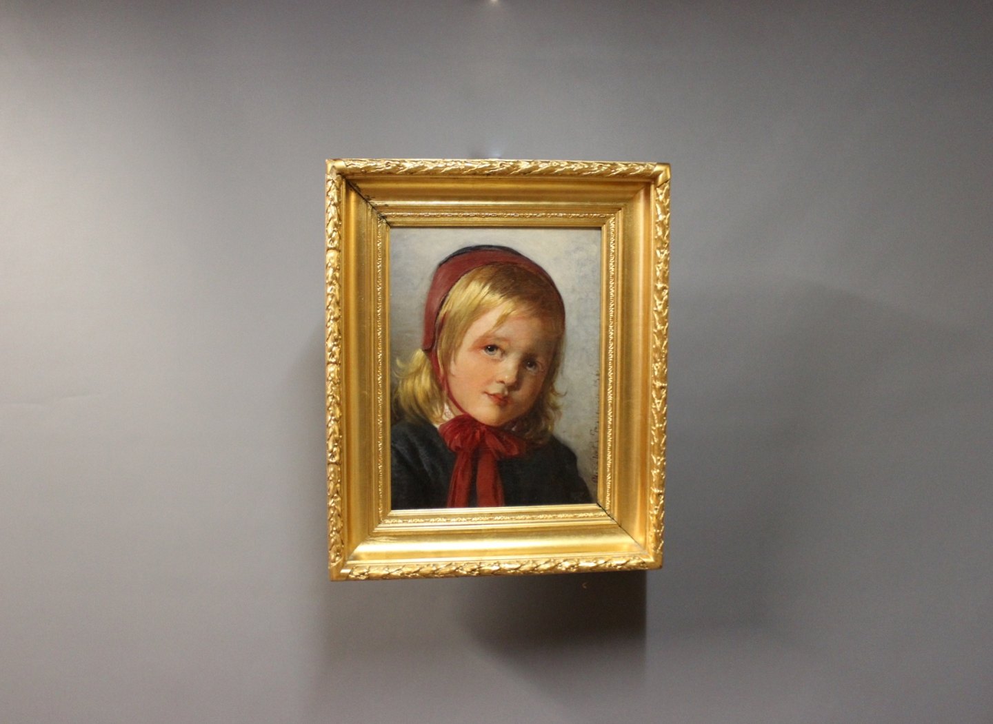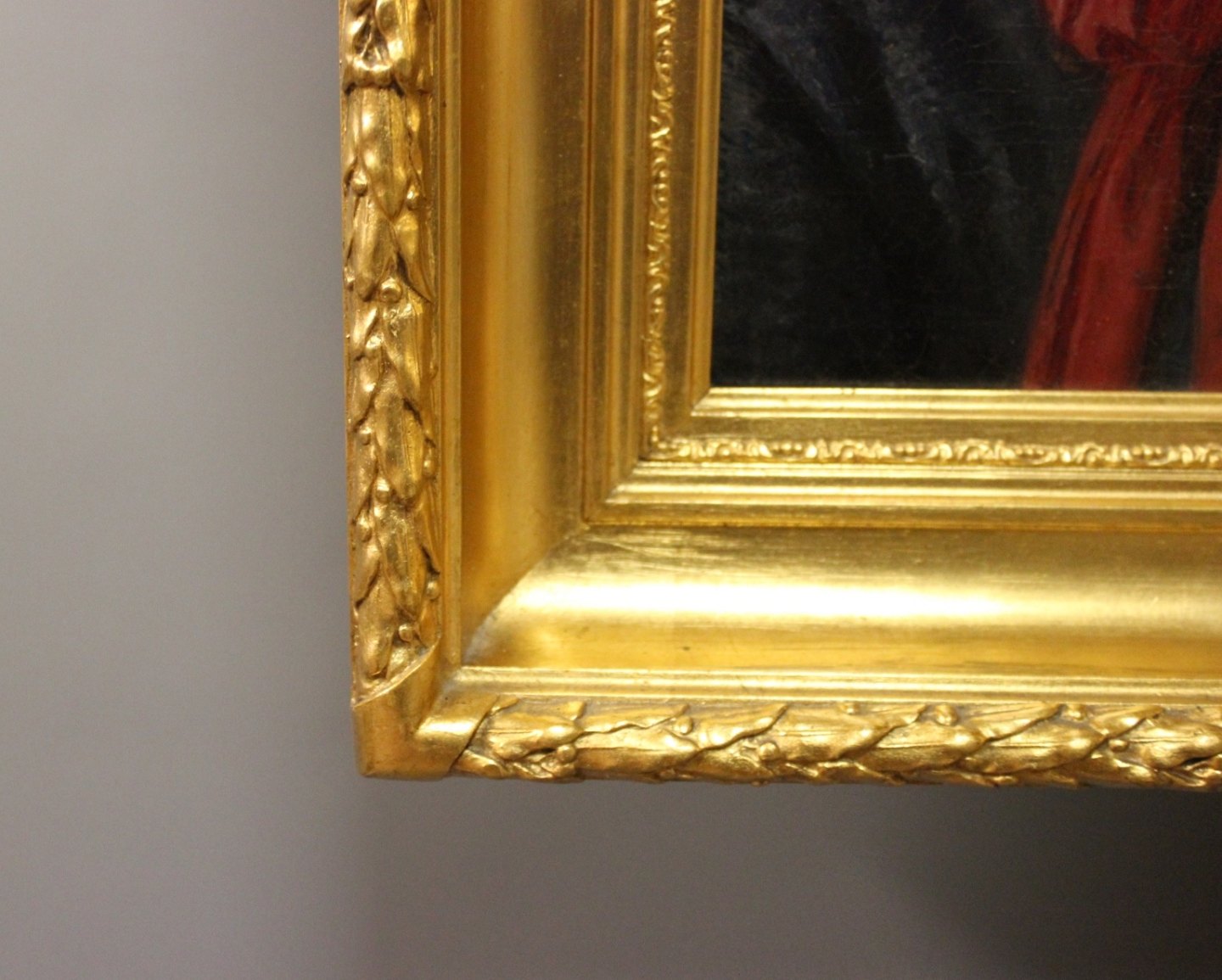 SoldAntique portrait painting from the 1800 hundreds, with a wooden frame decorated with gold leaf, unknown signatur 1891.