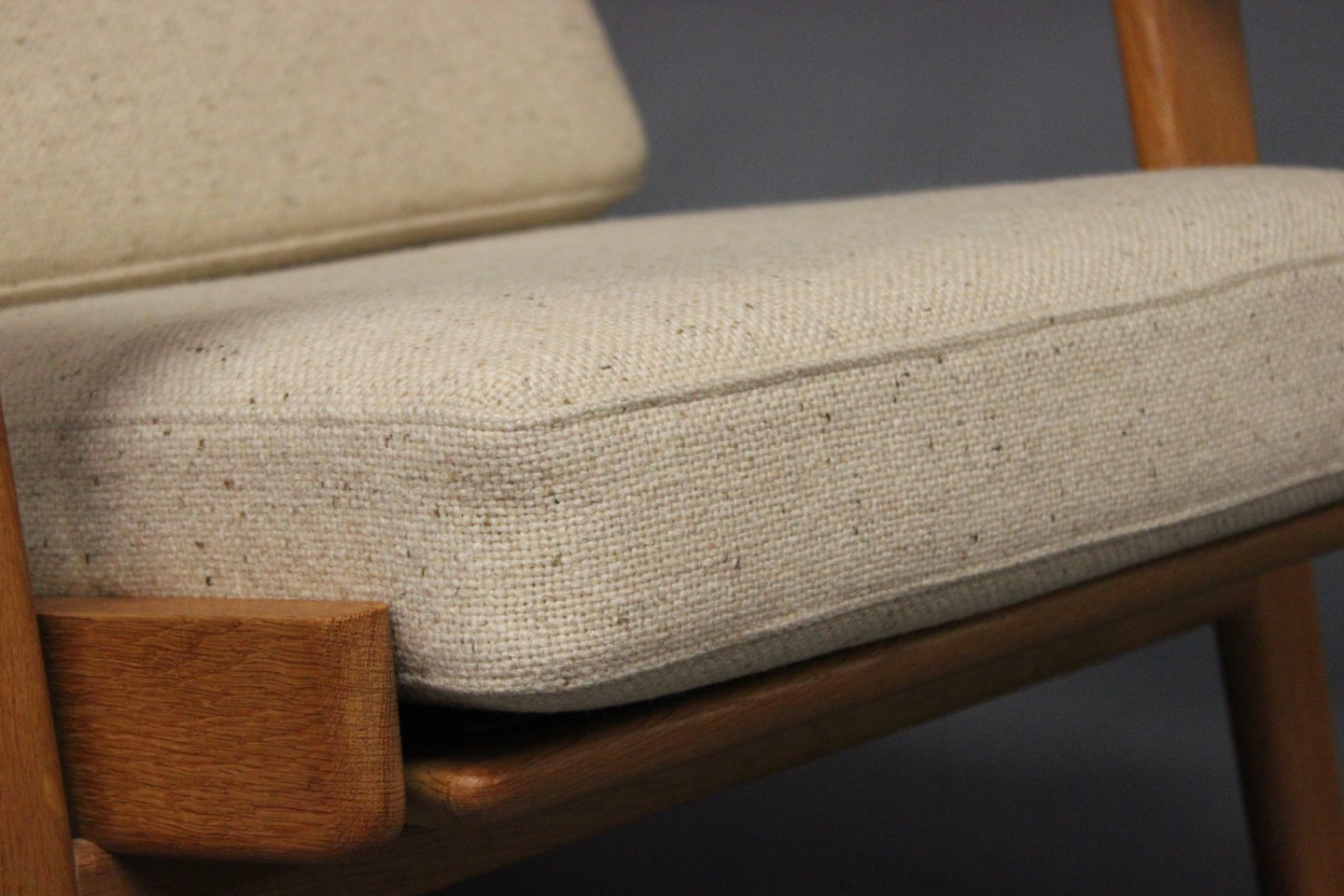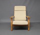 SoldArmchair with high back, model GE290A, designed by Hans J. Wegner in the 1950s and manufactured by GETAMA in the 1960s. The chair is made of oak and cushions in light hallingdal wool.