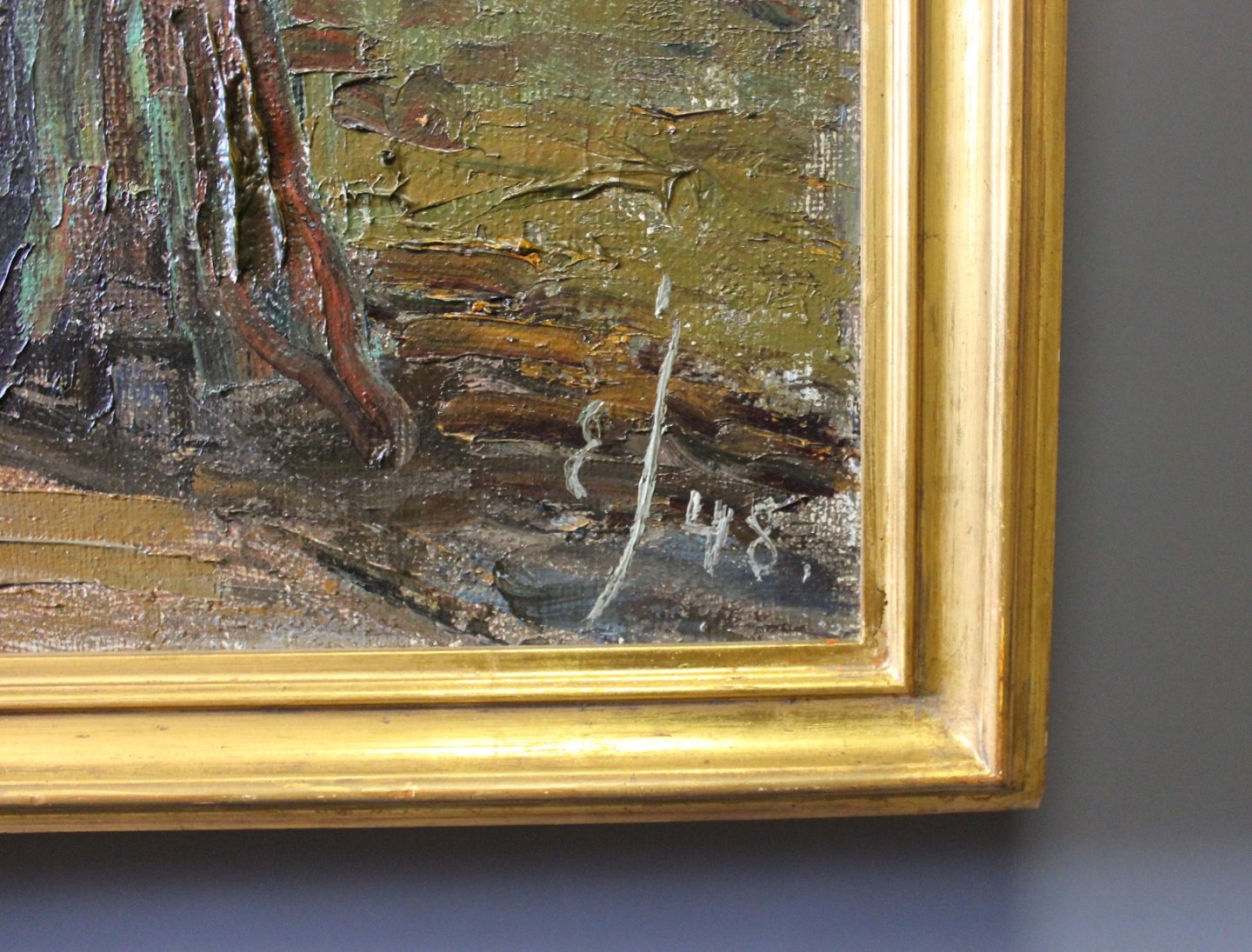 Painting on canvas in dark colors by Ejner Johansen from 1948.