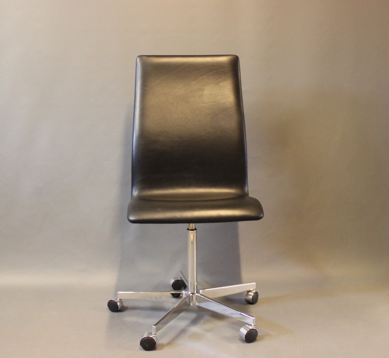 SoldThe Oxford classic office chair, model 3193C, in Black elegance leather designed by Arne Jacobsen in 1963 and manufactured by Fritz Hansen. The chair is with original upholstery.