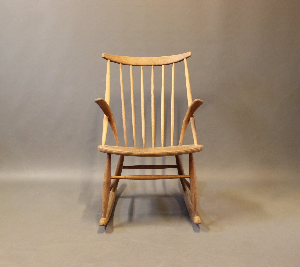 Gyngestol i sæbebehandlet eg designet af Illum Wikkelsø og fra 1960erne.