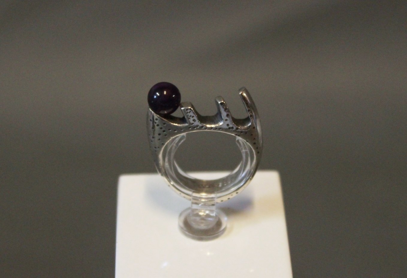 SolgtRing i 925 sterling sølv med lilla sten stemplet Musse.