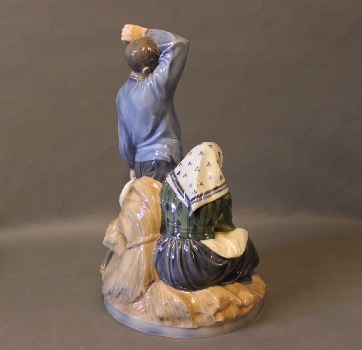 SoldLarge porcelain figurine, Man with Scythe and wife by Royal Copenhagen.
