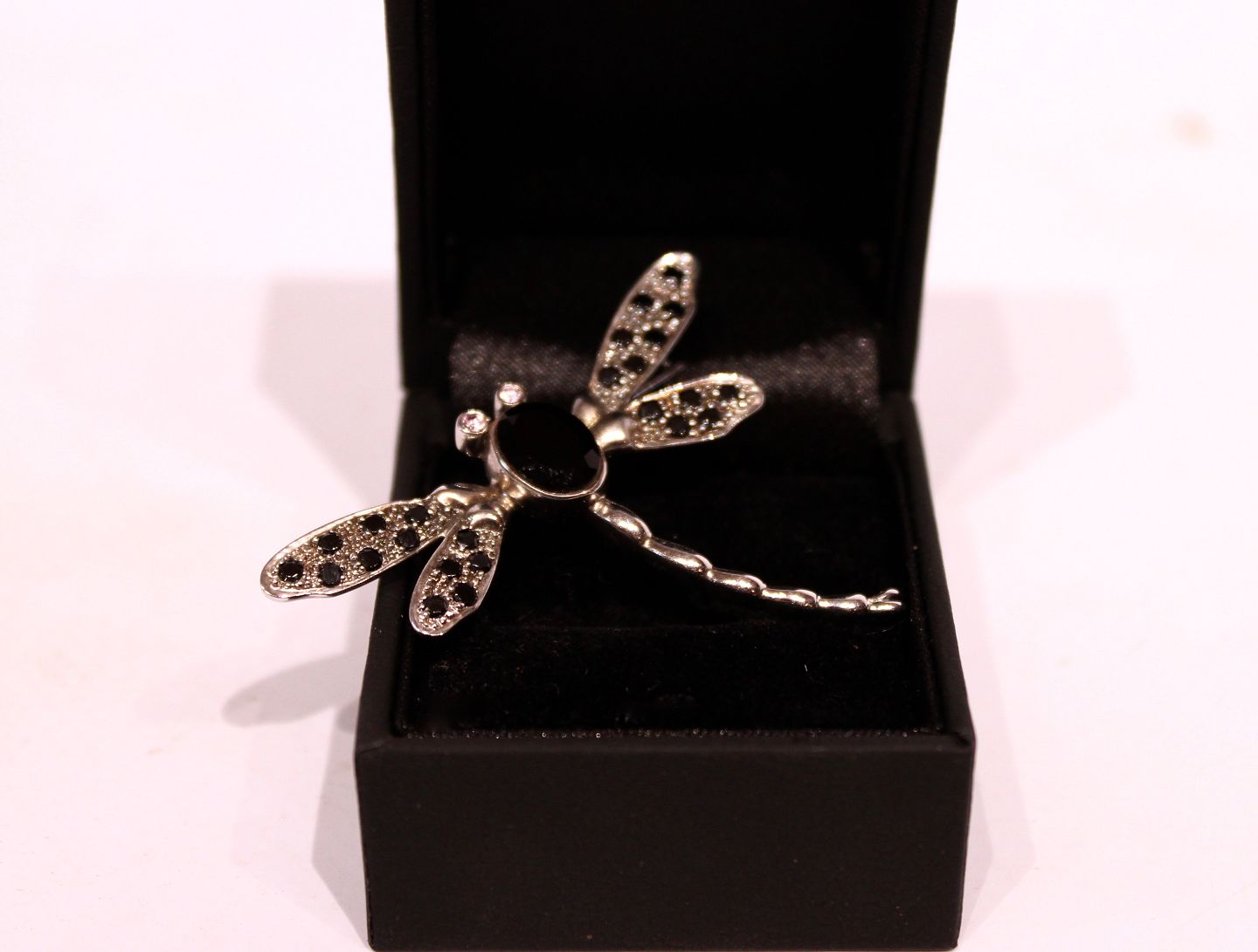 SoldBrooch in the shape of a dragon fly, stamped DEUS with stones and of 925 sterling silver.