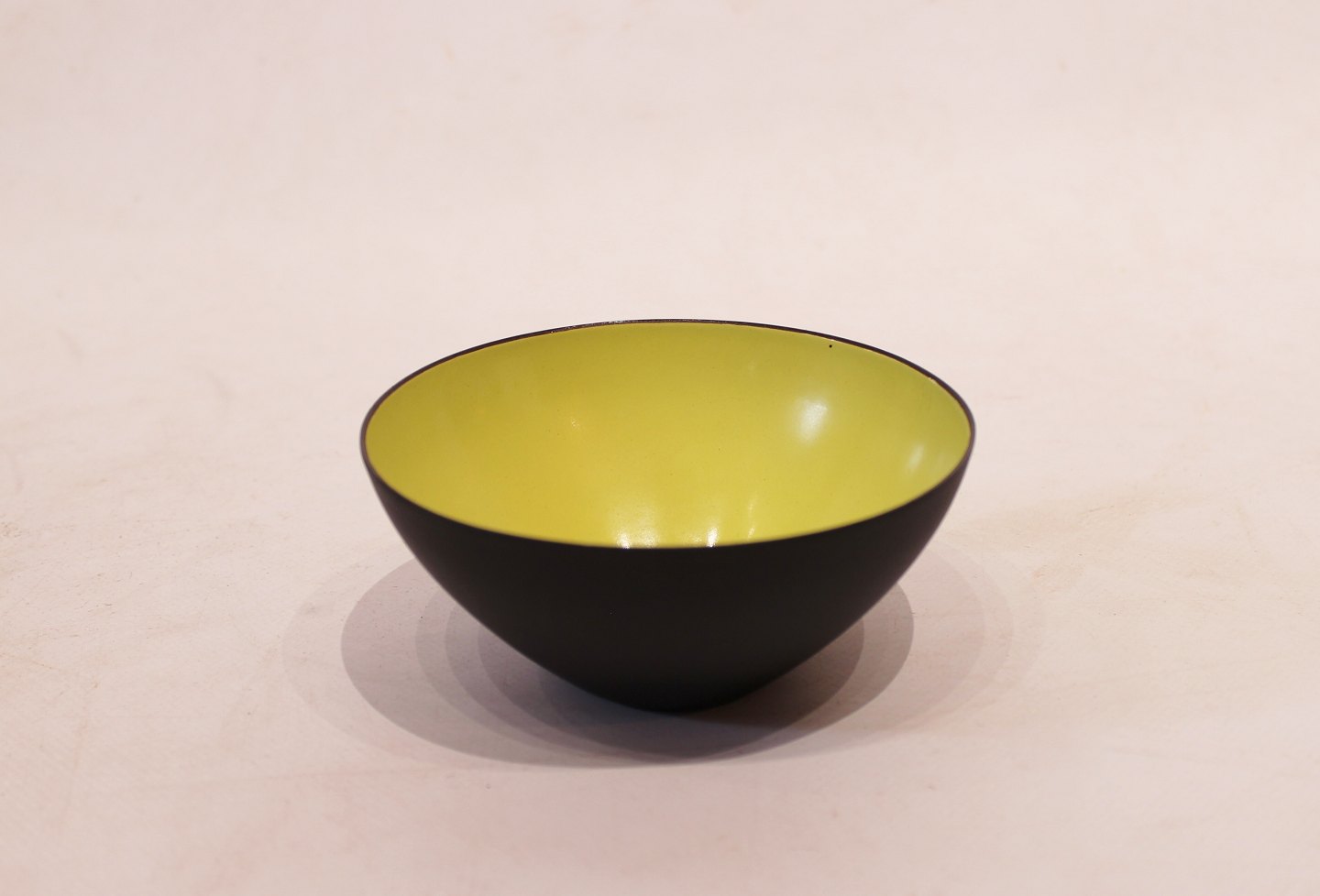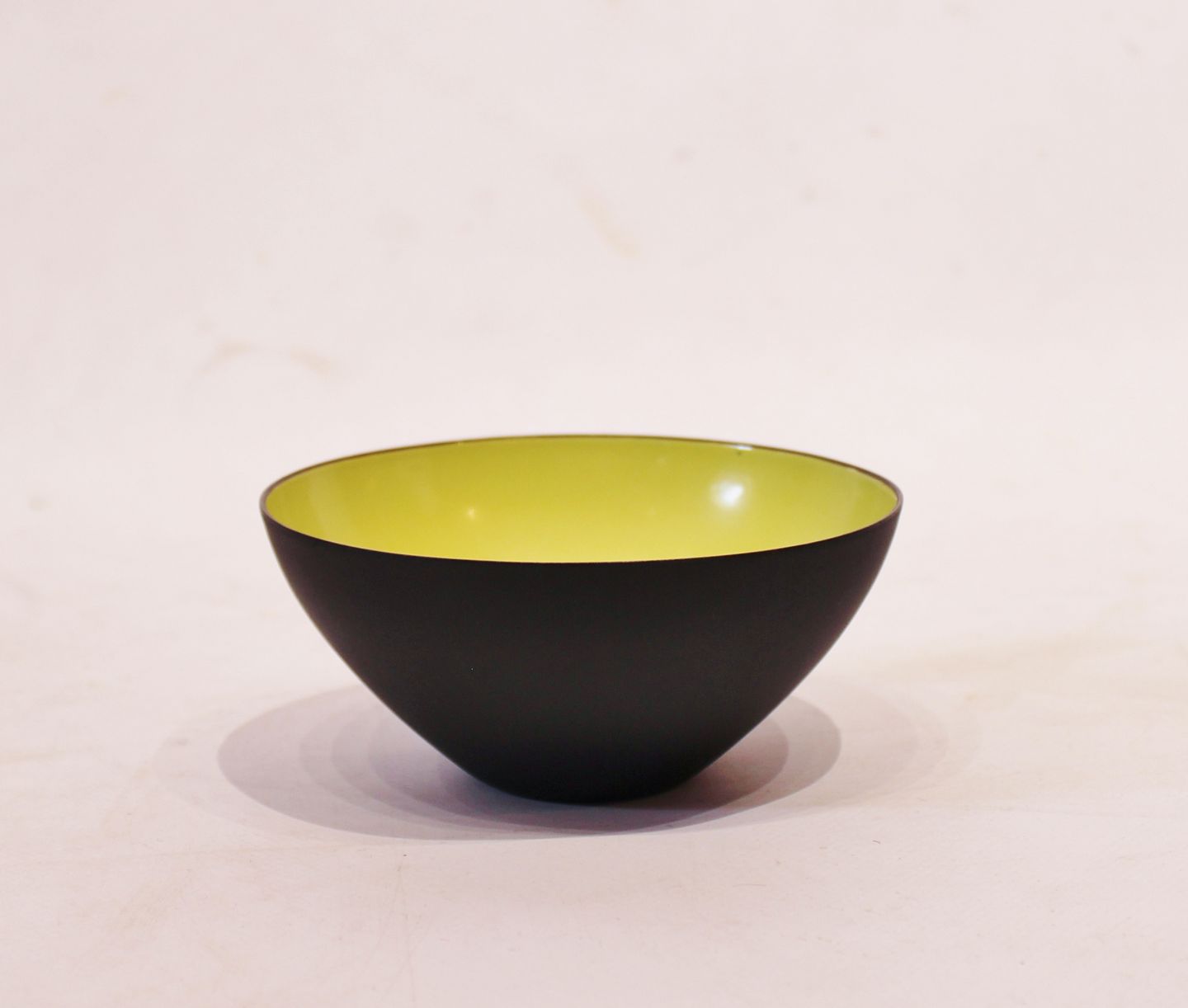 Krenit bowl by Herbert Krenchel of black metal and light green enamel from the 1960s. The bowl is of danish design and in great vintage condition.