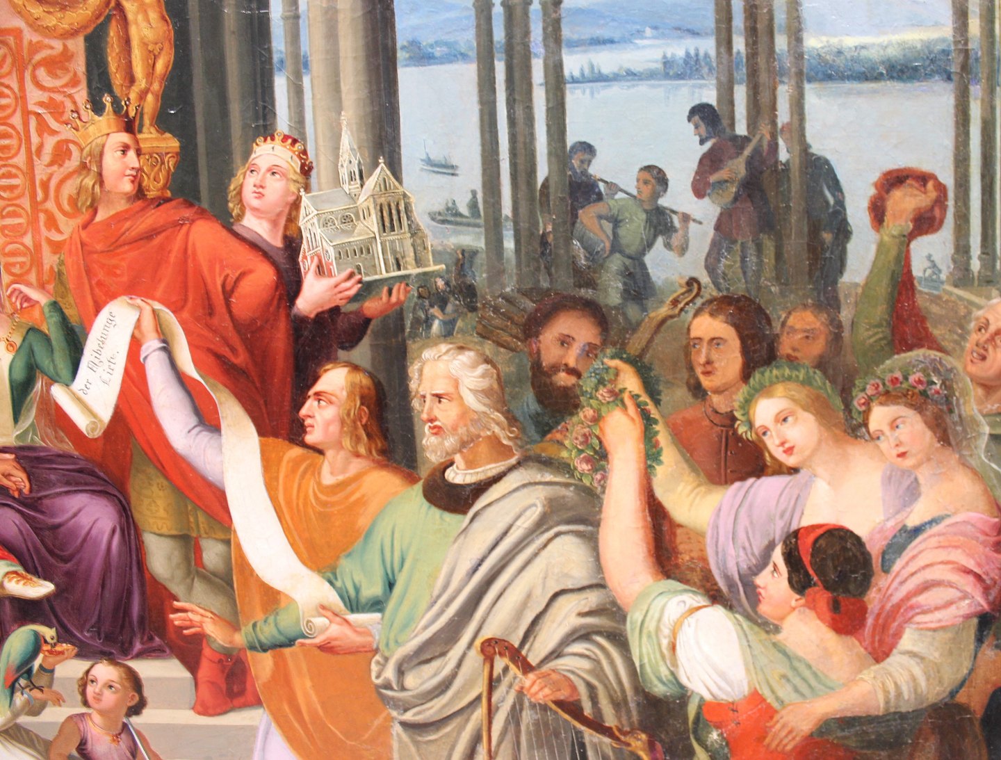 SoldOil painting on canvas from the 19th century by the German painter G. Otti. The painting is called "Der Niebelunge Liet", a scene which probably represents the wedding of Attila and the German princess Ildikó.