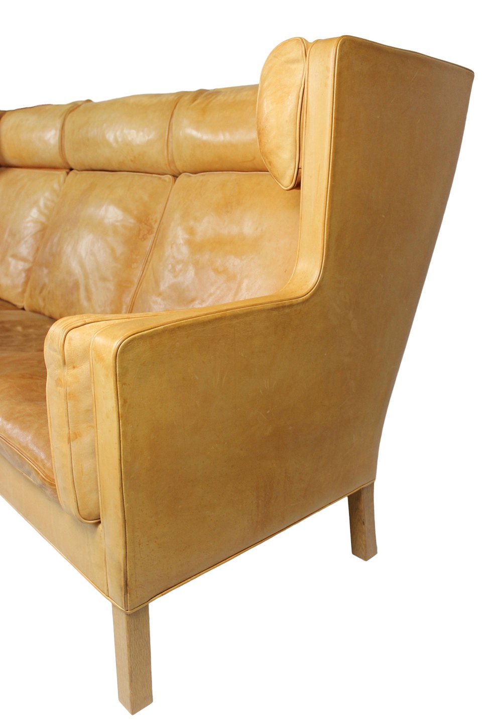 SoldThree seater sofa, model Kupe, designed by Børge Mogensen and upholstered with light cognac colored leather. The sofa is in great vintage condition.