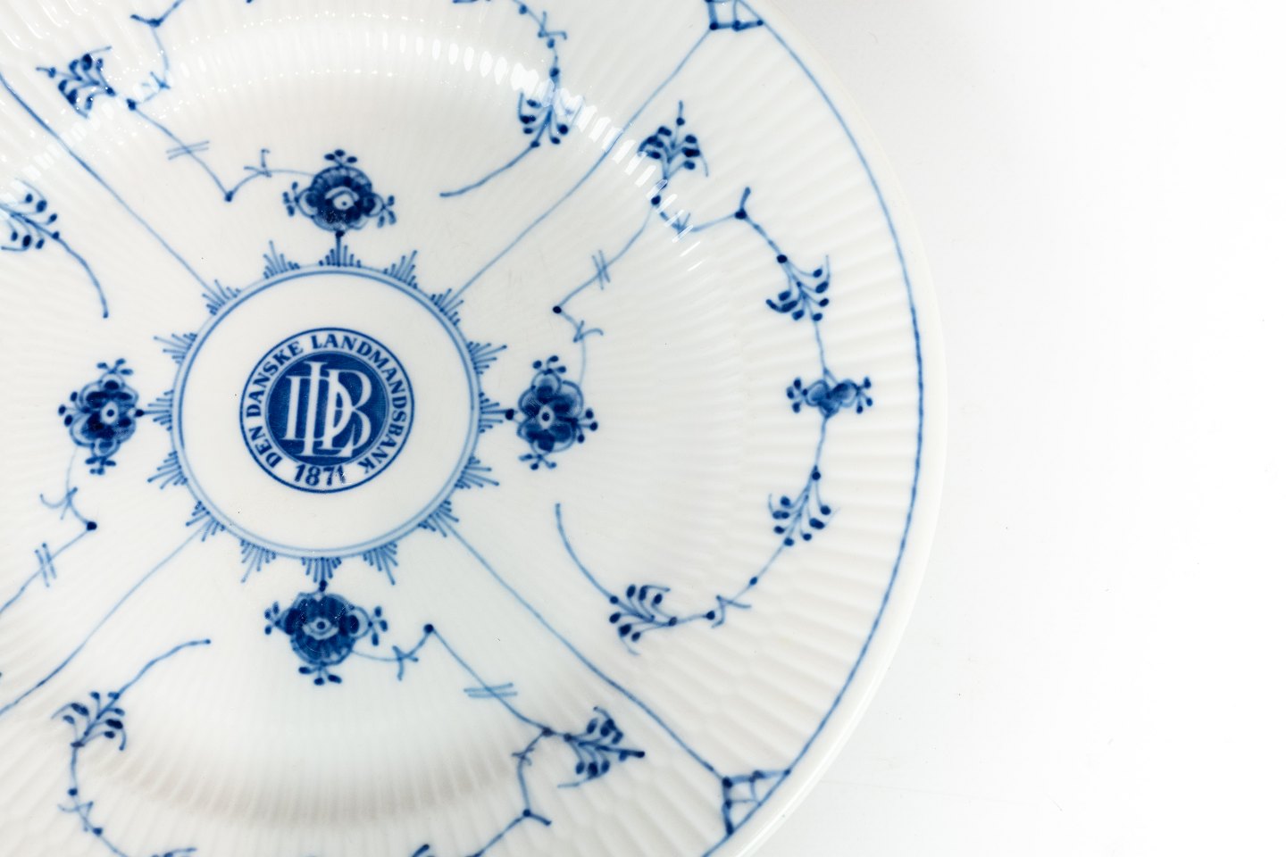SolgtKgl. musselmalet riflet middagstallerken, nr.: 2241, til den danske landmandsbank, af Royal Copenhagen.