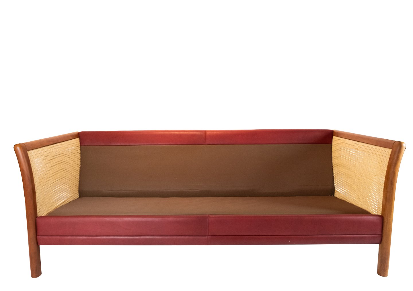 Two seater sofa upholstered with indian red leather of danish design from the 1960s.