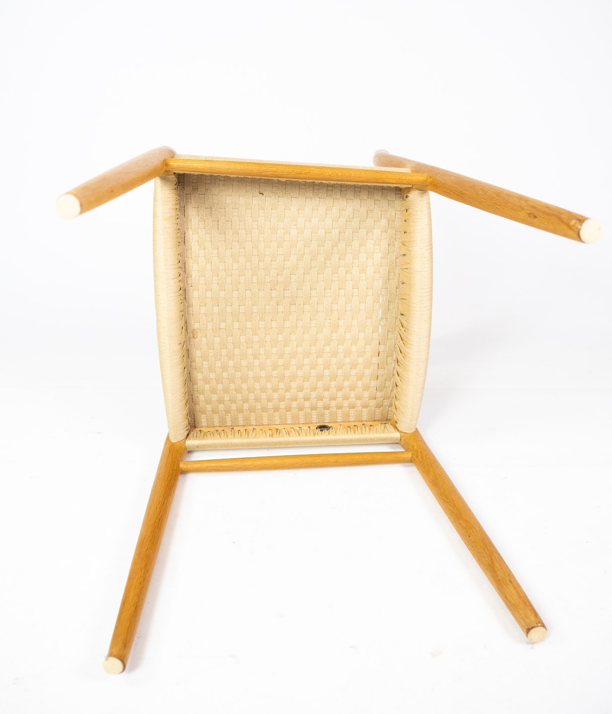 Fremstillet af eg og papirflet, er disse stole i flot brugt stand, hvilket vidner om deres holdbarhed og skønhed med årene. Med deres smukke træ og det delikate papirflet vil disse stole være et elegant og stilfuldt tilføjelse til enhver spisestue, der værdsætter dansk designarv.