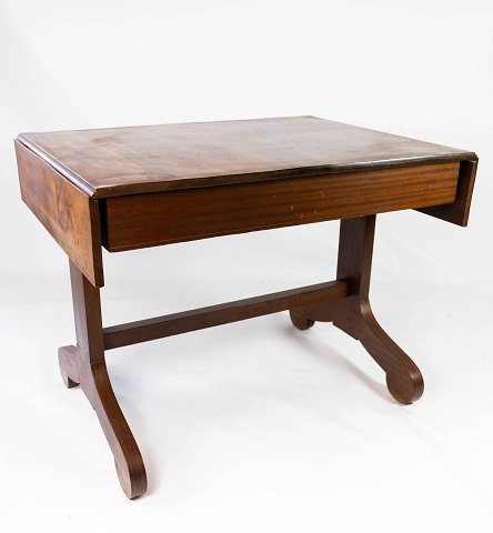 Round dining table of mahogany with inlaid wood of walnut, in great vintage condition from 1880.
