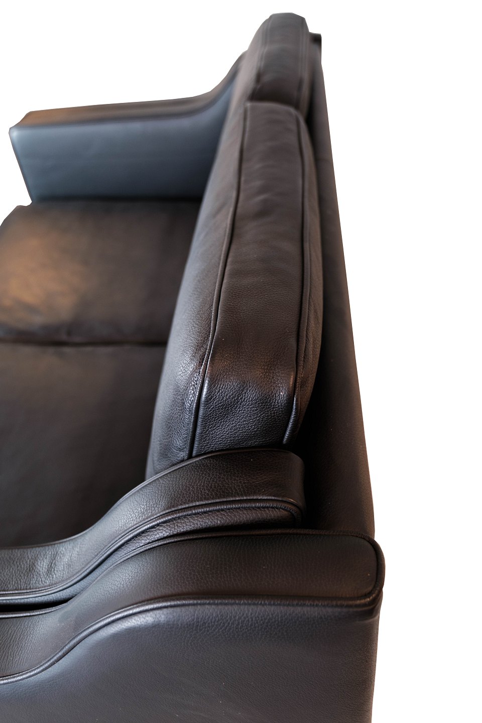 SoldThis black leather sofa was manufactured by Stouby Møbler in the 1960s and is designed for two people. It has oak legs that give it a stylish and timeless look. The sofa is in nice used condition and will be an excellent choice for those who appreciate good design and high quality. With its soft and comfortable upholstery, it is an ideal sofa for relaxation and coziness.