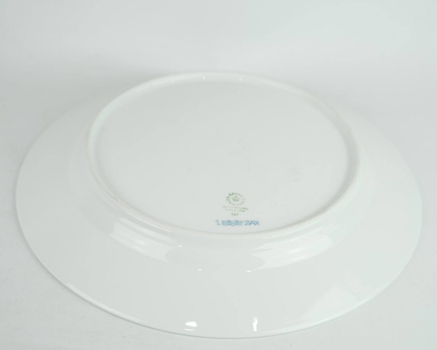SolgtRoyal Copenhagen musselmalet halvblonde middagstallerken nr. 627. Står i perfekt stand.
