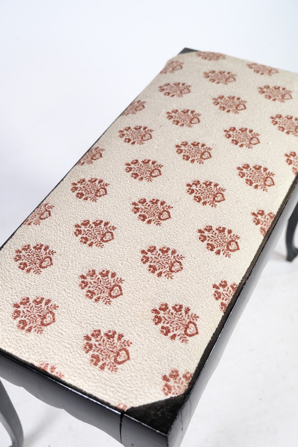 SoldPiano bench in dark mahogany with light wool fabric from the 1930s.