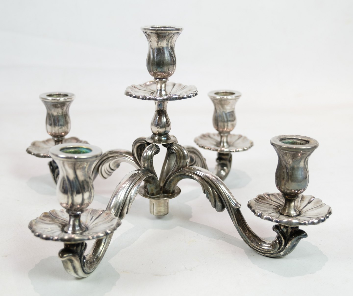 SoldAntique candelabra with five arms in silver-plated brass from around the 1930s.