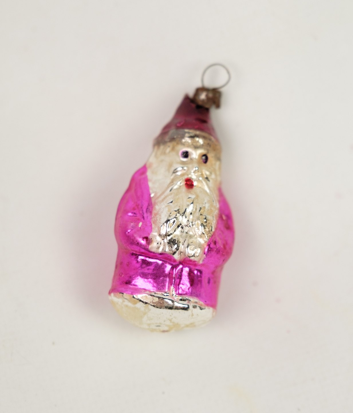 SoldAntique Christmas ornament of a pair of Santas in a red color from around the 1930s.